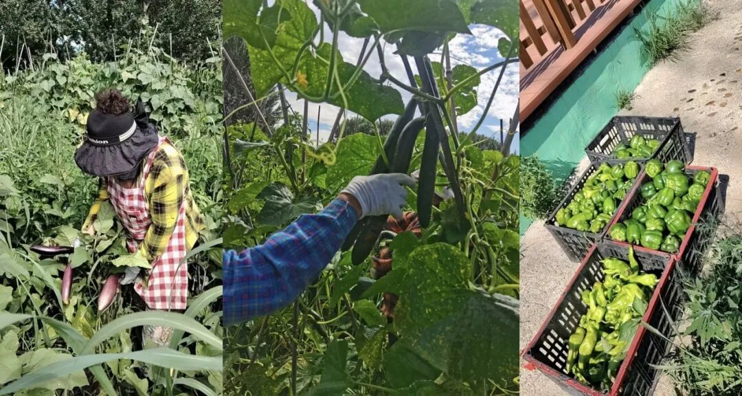 劳作剪影:家好月圆养老院的菜地里,戴遮阳帽的园丁正弯腰采摘紫亮的茄子,戴手套的双手从藤蔓间摘下鲜嫩黄瓜,竹筐里堆满翠绿的青椒。阳光洒在无公害的菜畦上,每一颗人工除草的蔬菜都饱含对长者健康的呵护,从田间直达餐桌。