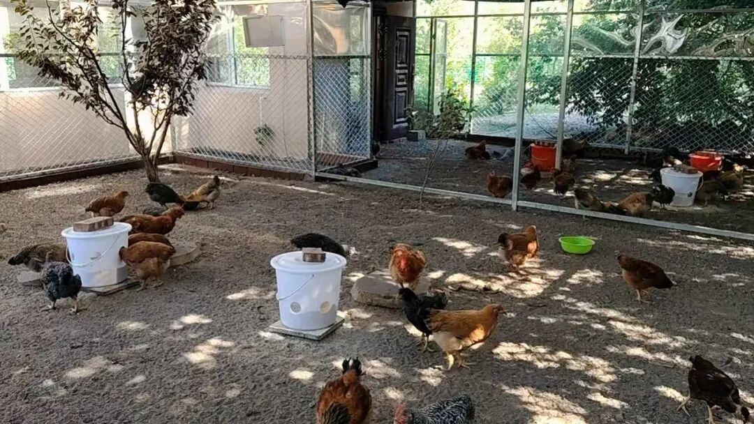 群鸡觅食:数十只溜达鸡在金属框架的生态鸡舍内外自由活动。它们或在泥土上啄食,或在绿植间穿梭,白色饲料桶边总有鸡群聚集。这些自然放养的土鸡每日产出新鲜鸡蛋,为养老院老人提供安全、营养的生态食材,让饮食充满田园风味。